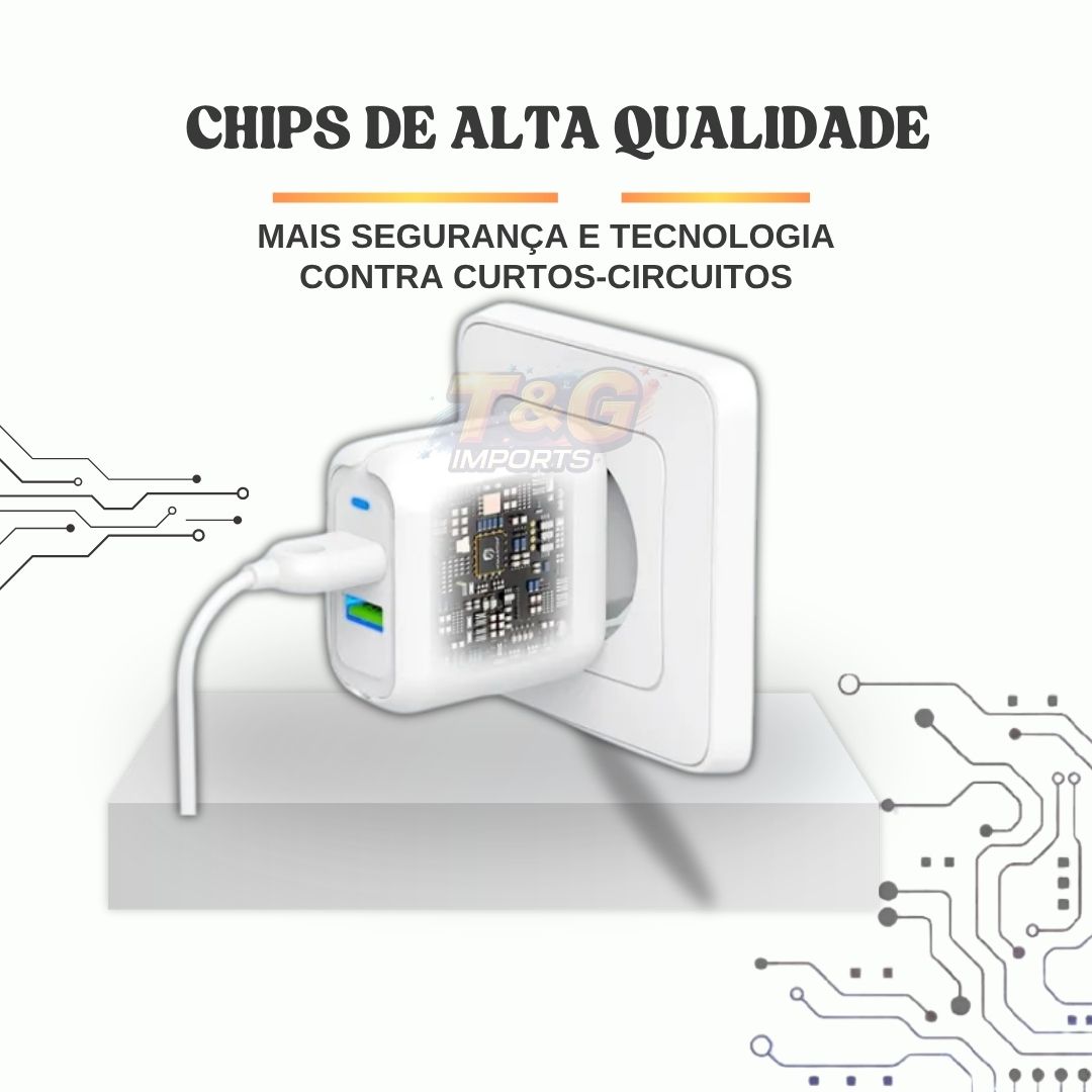 Carregamento inteligente: reconhece automaticamente a necessidade do aparelho e entrega a energia ideal.